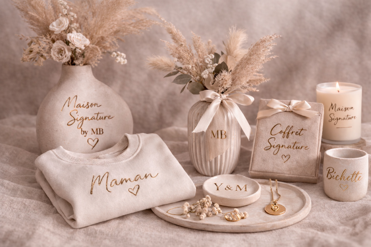 Des créations uniques, personnalisées avec soin, pour sublimer les moments précieux du quotidien.